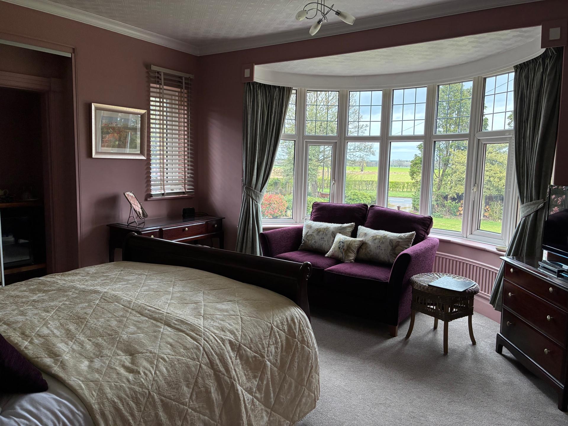 This spacious double room offers lovely views across the Yorkshire Wolds and features a beautiful king-size sleigh bed for a restful night’s sleep.